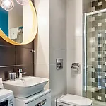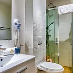 Este apartamento fornece casa de banho à parte e chuveiros.